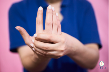 親指・人差し指・中指・薬指の一部がしびれたり、手の痛み、動かしにくさが出るのが特徴です。