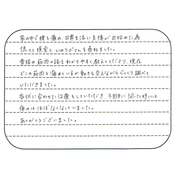 M.T様 新潟市南区 40歳女性 腰の痛み
